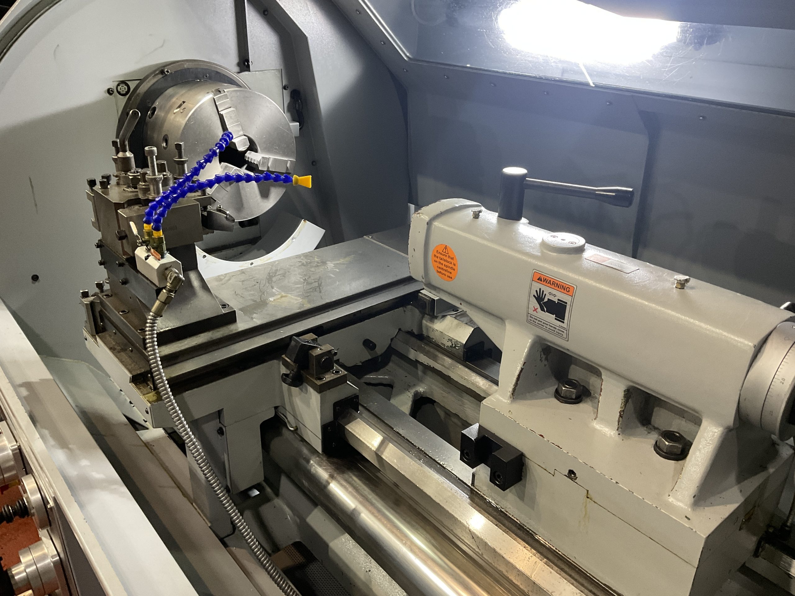3 Jaw Chuck, Coolant, Drill Holder Attachment, Interlocked guards, Low Volt Light, Quick Change Tool-post, Tailstock